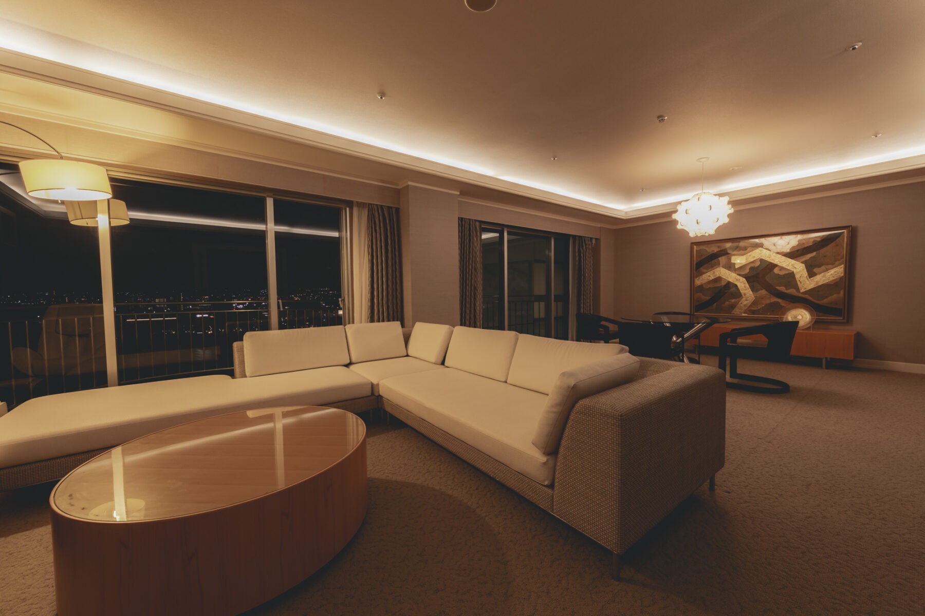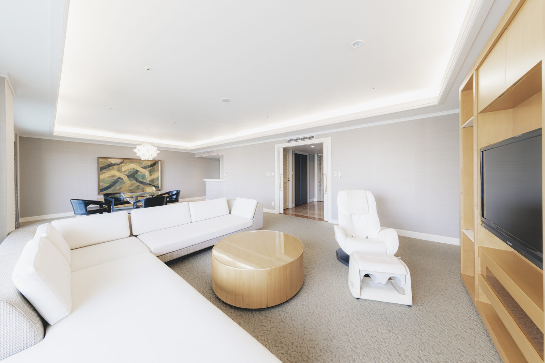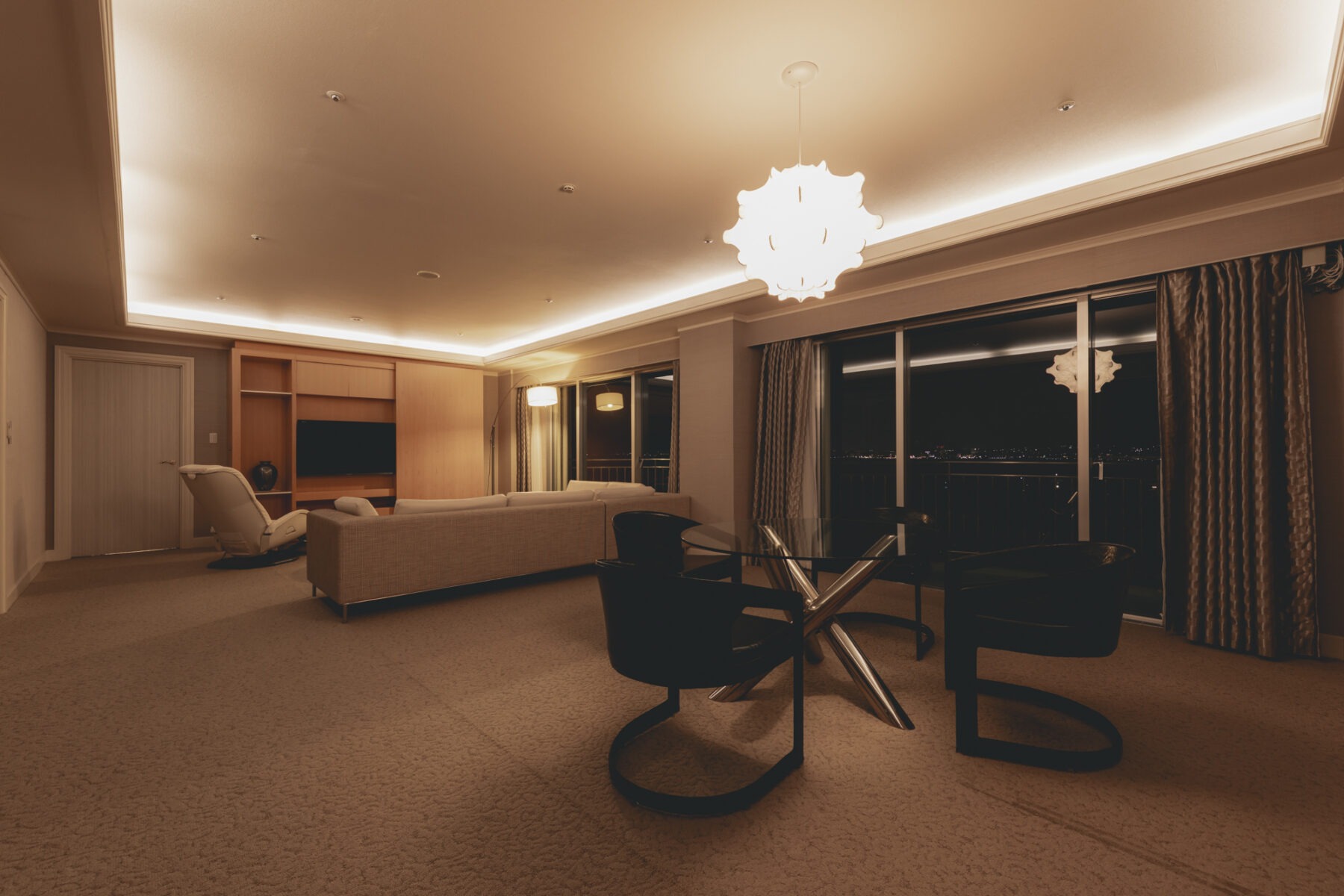 当館に一室だけの特別なスイート。広々としたリビングと独立した寝室洗練された設えが上質で印象深い滞在を演出します。